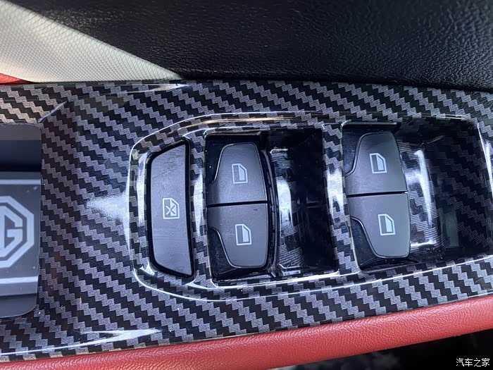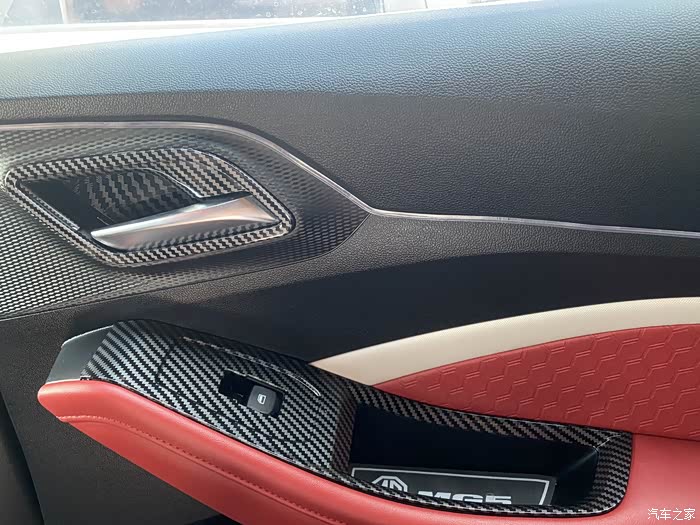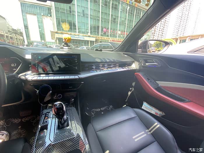 主驾驶面板也贴了碳纤维装饰。