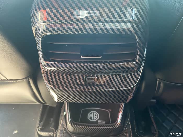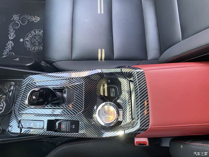 扶手箱也小改了一下,全车的碳纤维装饰,