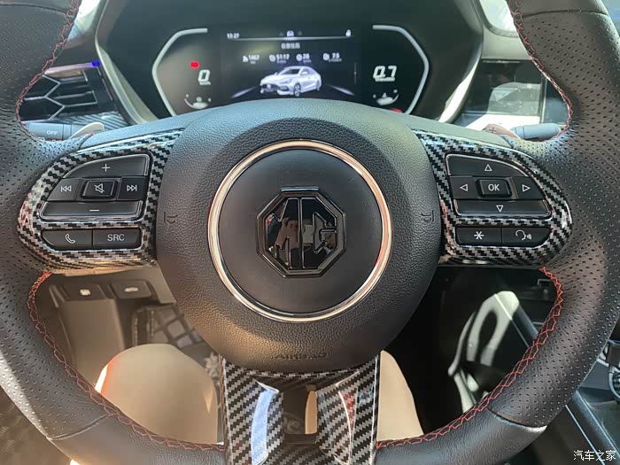 方向盘也同样改装了,也是弄的碳纤维装饰