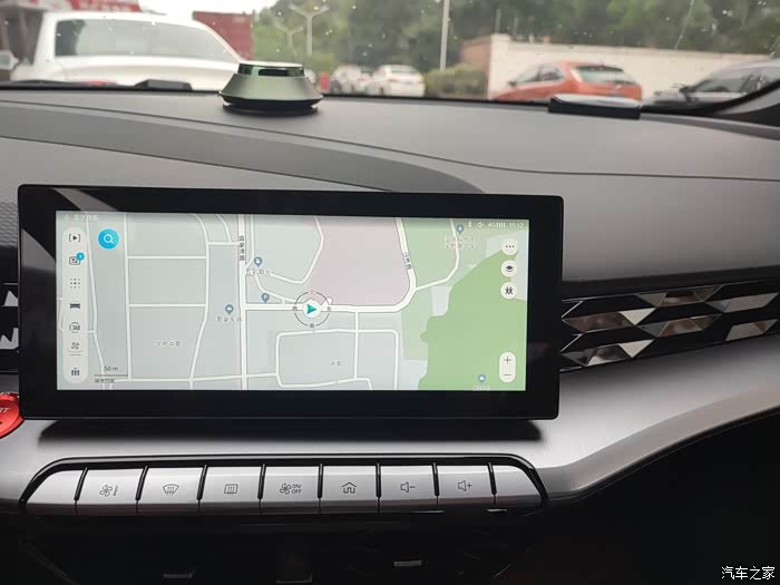 挺大的液晶显示,下面是钢琴似的按键,手感不错,整个角度也是微微偏向主驾驶,很有驾驶仪式感。