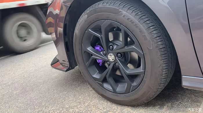 轮毂没有更换,而是采用了熏黑处理,看起来更沉稳耐看,加装了紫色的卡钳,整个车轮街头跑车的感觉出来了