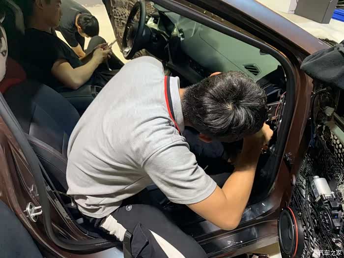 喇叭改装,师傅正在帮我的车拆组线路