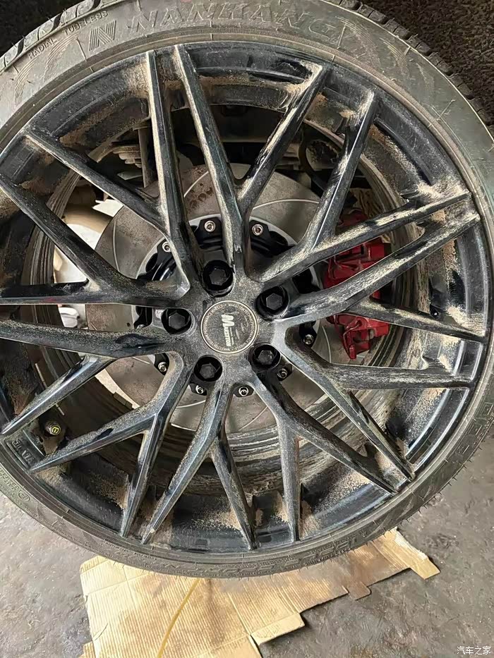 拆了轮毂,原厂的卡钳+刹车盘,总是差了点意思