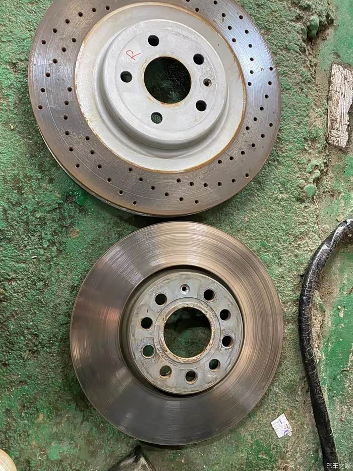 升级的刹车盘和原厂的对比,一下就来感觉了