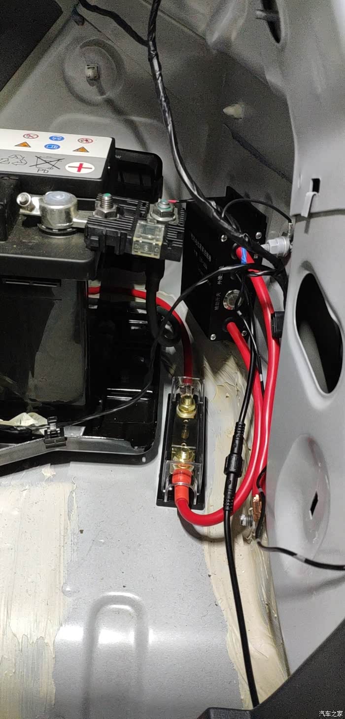 小六的亏电众所周知,为了保护原车电瓶,我外接了一个副电瓶,供停车听音乐用,中间用一个隔离器分开,熄火后,主副电瓶断开,启动后,自动接通电瓶,并给副电瓶充电。