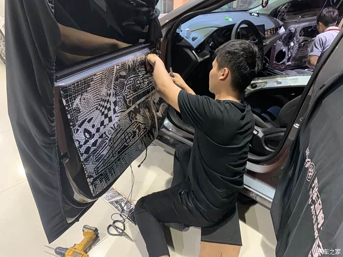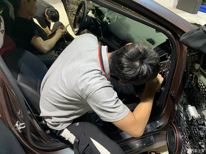 拆门板,安装中音喇叭。