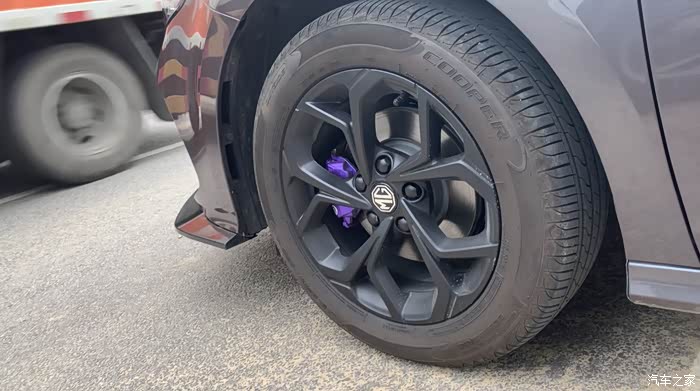 轮毂做了简单的熏黑处理,卡钳喷涂了耐高温的紫色喷漆。
