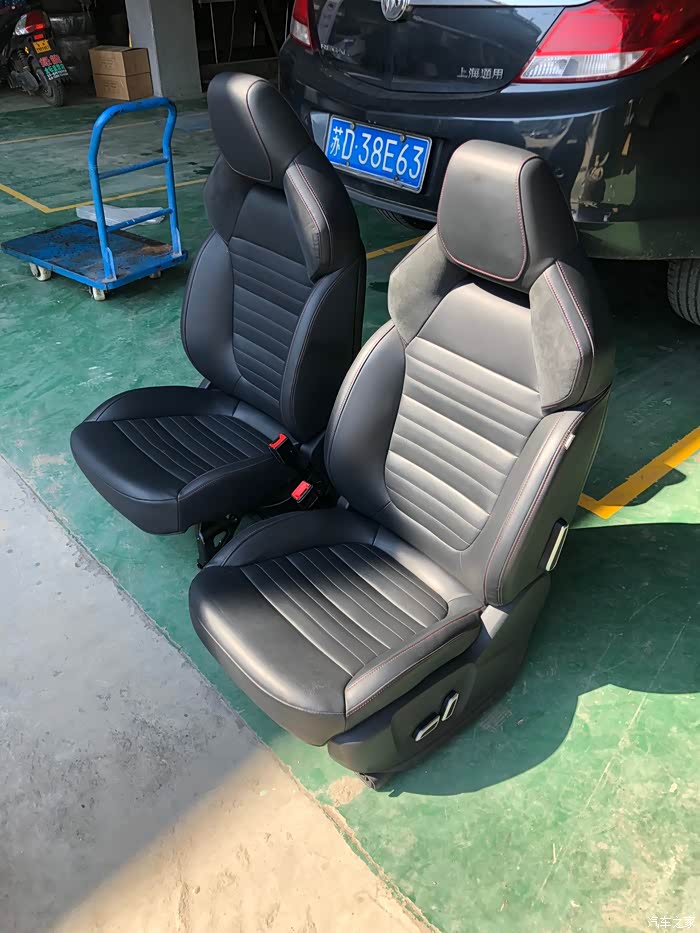 座椅和安全带装上后的效果 hs座椅坐姿比原车高 而且更加厚实 包裹性一般没有座椅外观感强
