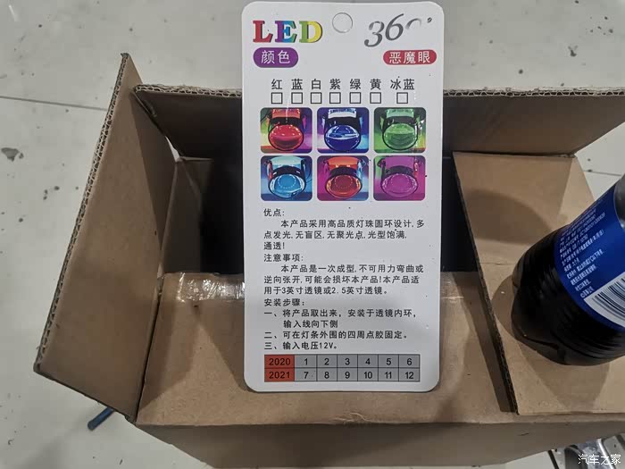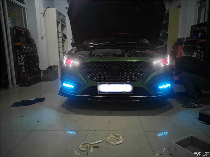 其实我的MG已经加装了好几处灯光了,像什么獠牙日间行车灯、叶子板装饰灯、流光尾翼灯、还有冷光线条与车内氛围灯(不过车内的刚刚拆除,感觉有点干扰视线),这次想要升级安装的是双光透镜+LED前照大灯,以及‘恶魔眼’行车灯。这里就单独说一说恶魔眼的安装: