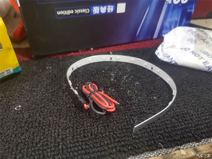 透镜已取出,更换上红色恶魔眼Led灯带,其实恶魔眼就是led灯带利用凸透镜的聚光作用,形成圆筒灯型