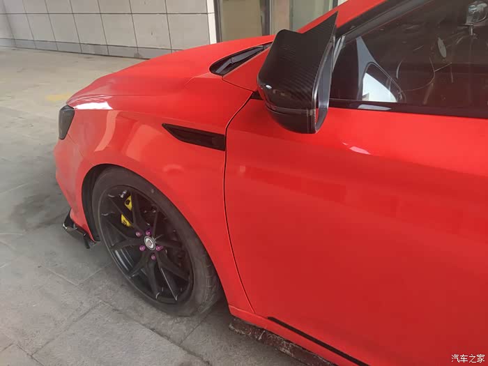 改装清单:法拉利红改色膜、亮黑獠牙前铲、eddy高流量进气风格、18x8J迈斯盾铸造轮毂、22545R18国产轮胎、艾巴赫短弹簧、锻造螺丝、国产TEI刹车型号P40NS大四活塞、355划线打孔盘、牛角后视镜、亮黑侧裙、换挡拨片、氛围灯、喇叭、尾翼、亮条贴黑、MRG中尾段阀门排气。最后附上溜溜哥的一句话:给梦想尊严,让道路安全,理性改装,合法驾驶。