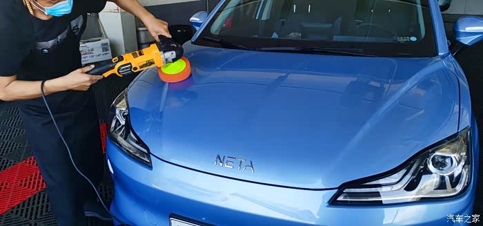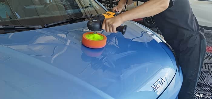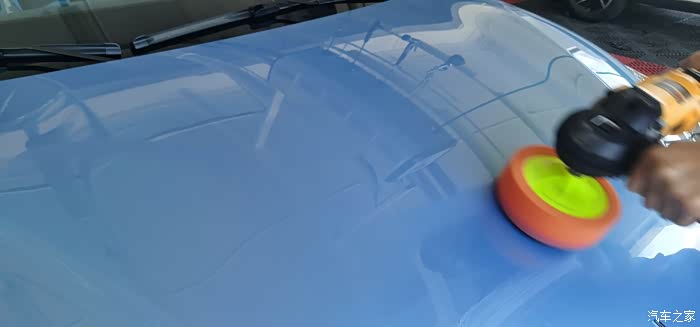 打磨机转得很慢,只是为了把釉打均匀,不会伤了车漆的