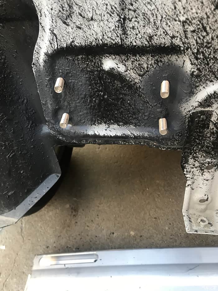 固定底座,也最后加垫片。吸能盒的高度正好,正顶纵梁。喷上了油漆一层,保护一下。