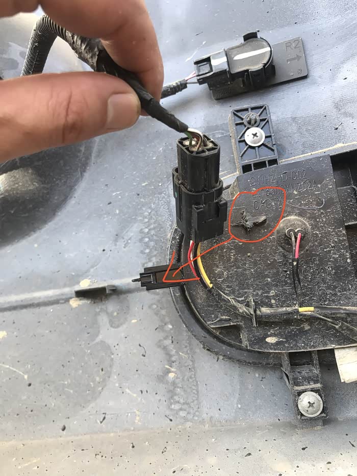 另一边的这个也平移了。最后发现,安装保险杠后,防撞梁上的缓冲泡沫正好把这两个平移的接线柱和接线头顶掉了。白忙活了。