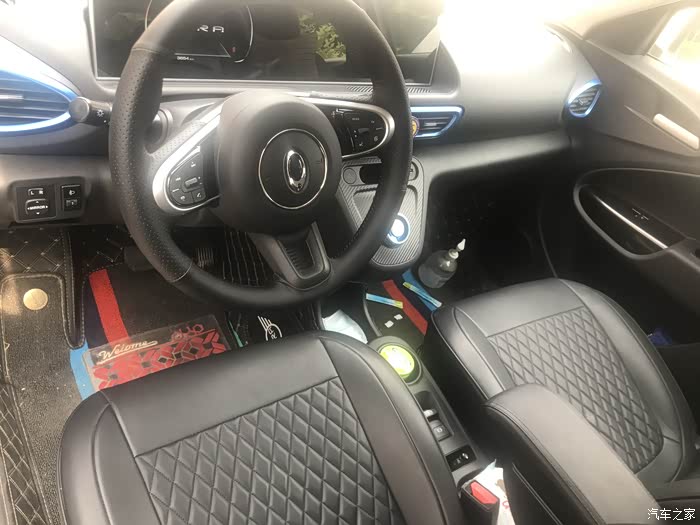 全部自己动手:手缝的方向盘套、换挡碳纤维贴,中控扶手,全包座套,全包围脚垫。