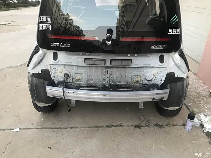 右边也不用切这么深。切好后,就把后保险杠复位了。