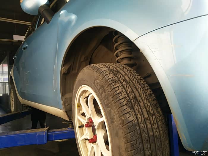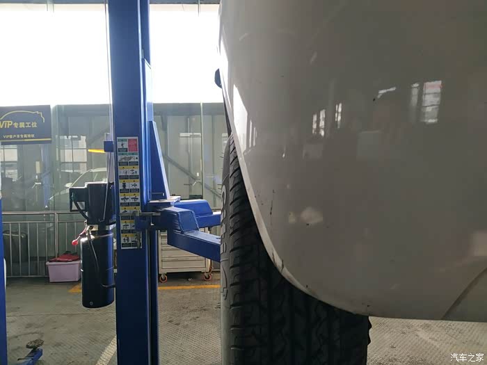 轮胎内外两侧都要检查一下是否有鼓包的情况,尤其是轮胎内侧,平时看不见,趁着在举升机上,可以逐一认真检查