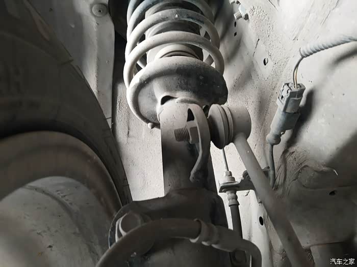 四根减震和弹簧的性能相比新车有一定的衰减,但总体表现还是任性十足。四根减震都没有渗漏的情况出现。