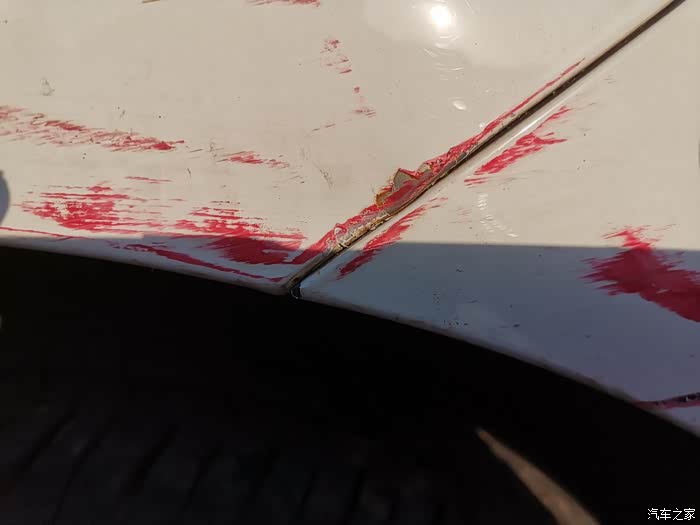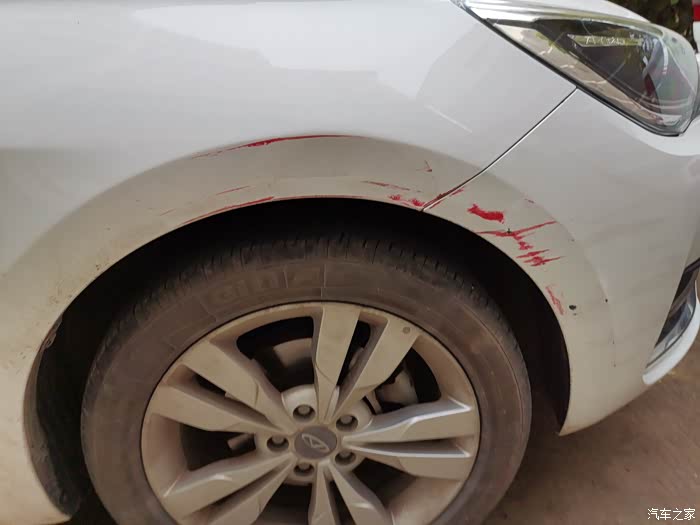 这几天我的小艾可是受苦了,车子停在楼下,不经意看到车子保险杠有红色的漆,刚开始以为是孩子画笔涂的,可是走近一看,大事不妙,竟让别人给剐蹭了,顿时心态崩了。没办法只有物业找监控看看了,没想到被三轮车倒车给撞了。出了问题总要面对,联系服务站,咨询一下第二天就去维修了,心痛啊!