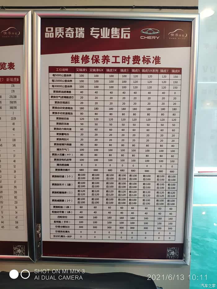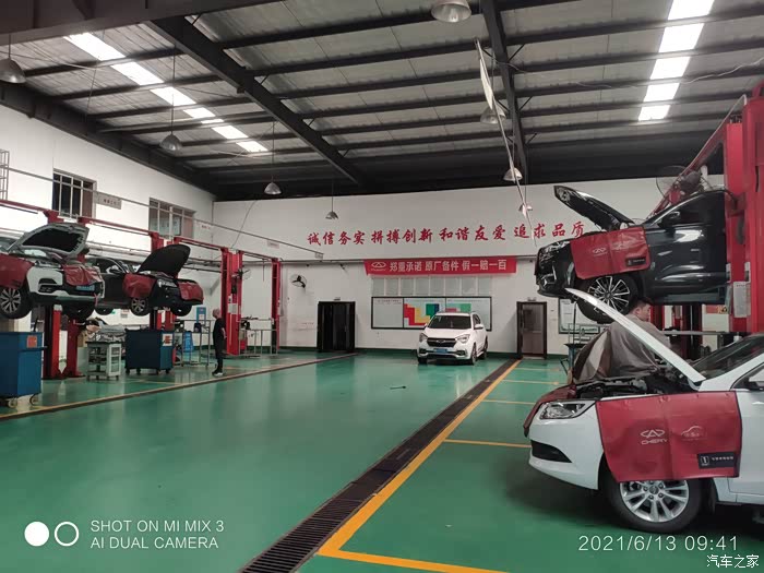 这是车间一角,工位很紧张,来保养和维修的车很多。