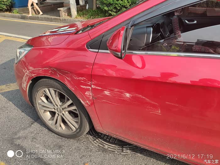 这是我的车损伤点,保险杠和门刮伤,翼子板凹陷。