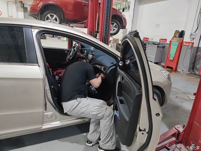 检查空调滤芯,还比较干净,师傅吹了吹就安装回去了。