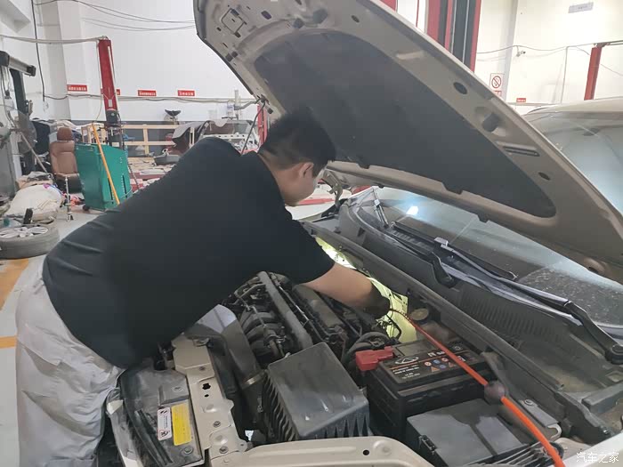 然后师傅在清理发动机舱。