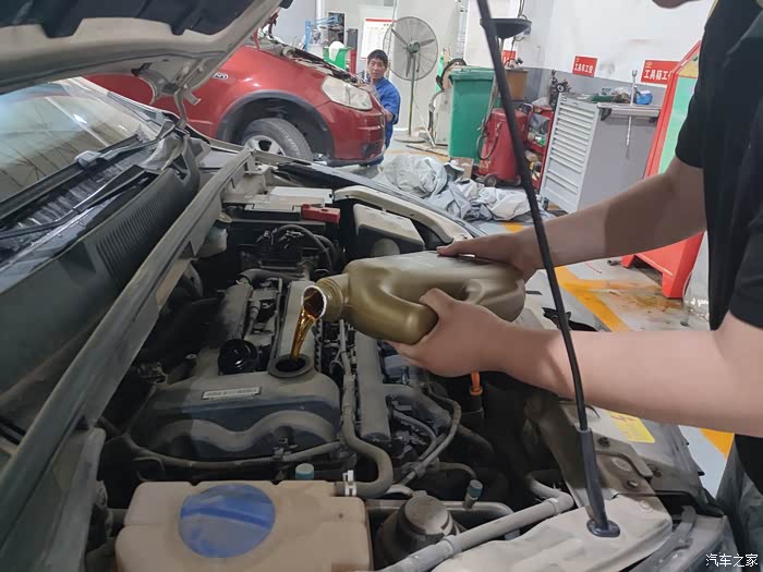 清澈透明的机油导入的发动机内。