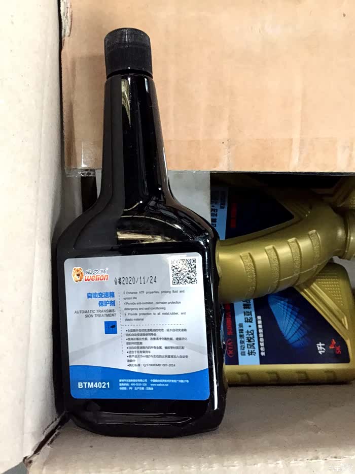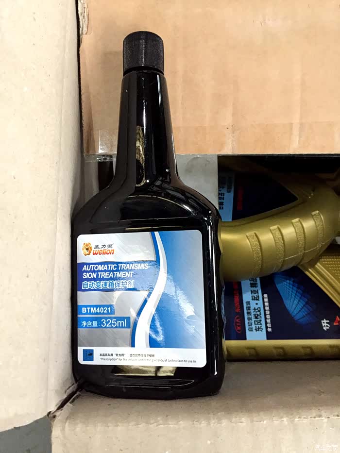 店里说没有循环机,只能重力换,还劝我说重力换好,循环机不好。恩,我就听听。不过我觉得厂家竟然都允许重力换,应该也是能满足要求的。所以就不再提高要求了,但是我同意加了一瓶自动变速箱保护剂,以弥补我没有循环换成的目的,后来想想,估计是交了智商税,不管怎么说,心理上好受点。