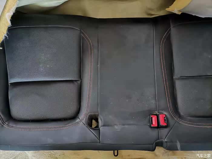 这样虽然也解决了问题,但是总感觉不伦不类的,头枕是皮的,座椅是布的,太别扭了。凑乎用了一段时间,这几天终于有空了,就想彻底解决后排座椅这个事。要是换全新的座椅的话,订货需要一千多,还得等。谁叫咱有渠道了,果断去配件群里喊话去。有一家回话了,有套拆车的皮质座椅,成色还很新。去看了下还行,谈到300拿下,装车上就拉回来了。