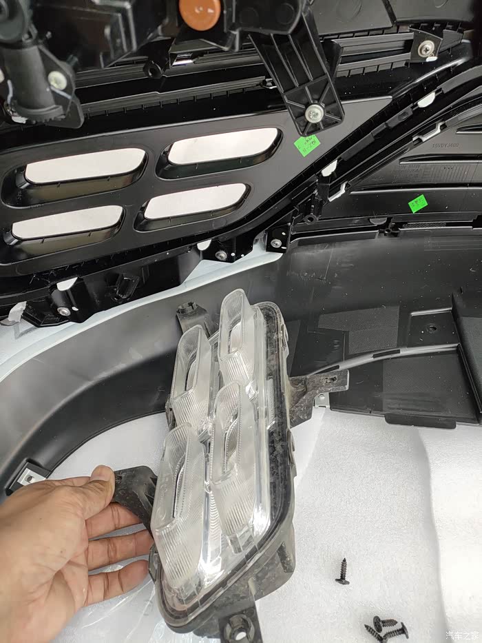 当时就是想如果装不上就留着以后出给鲲鹏版车主,这个毕竟是易损件,于是就开始了折腾之路,保险杠,亮条雾灯,开关插头线束等等等等。改装过程如下,没有什么太多的技术含量可以印证一点就是可以原装位替换。接线也简单,原车BCM都已经预留孔位也有控制单元,只需要自己接线即可。同时买个带有前雾灯的灯光组合开关。