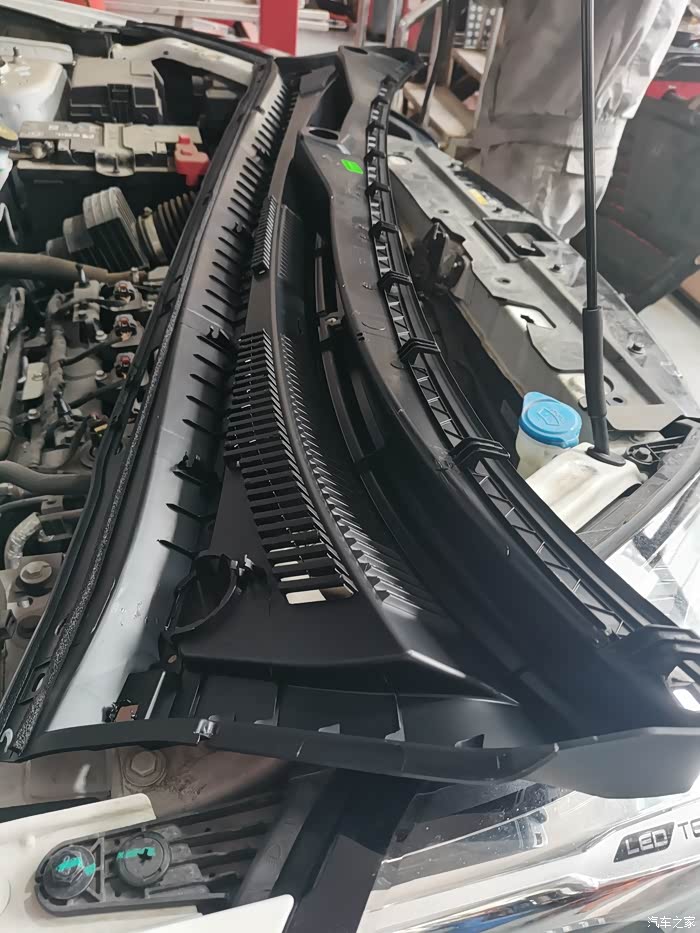 更换小零件,这个不知道叫什么名字,一个塑料件,和风挡连接的地方变形了,行车中右前方偶尔吱吱响!