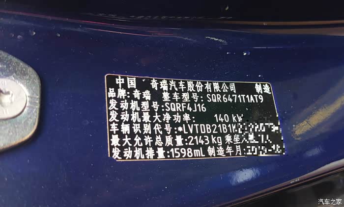 发动机型号:SQRF4J16,能看出来是1.6排量的