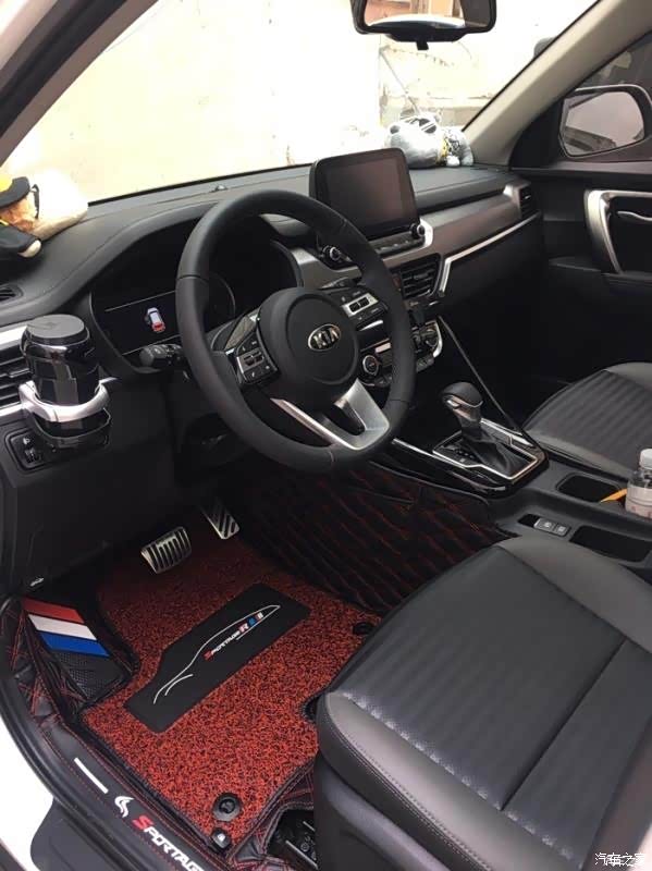 前排座椅脚垫也必须要有的啊。红色的有一点点骚气啊。哈哈