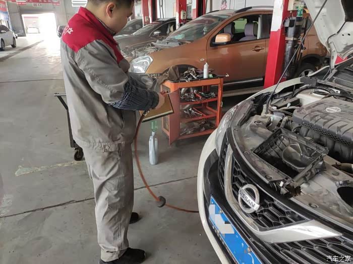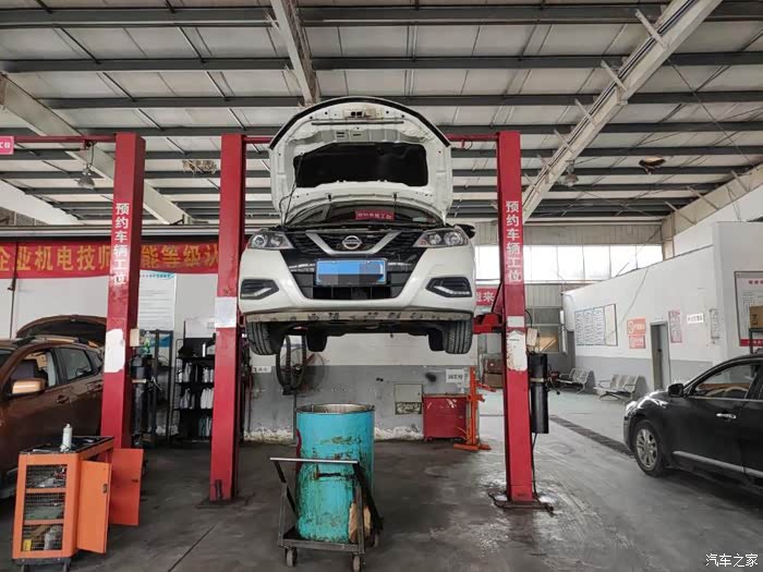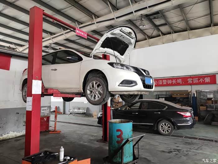 我的骐达上工位了,这是在放机油。