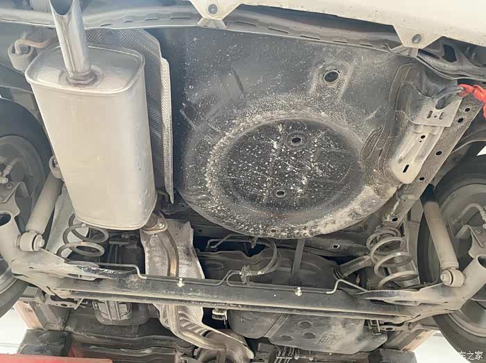 买车时候喷的底盘装甲,没有出现开裂的现象,底盘整体状况很好,几乎看不到磨损剐蹭现象,师傅检查了一圈车底也没发现有异常的部位。