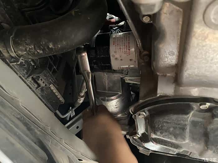 把老的机油滤芯拆下来,设计师设计还挺好,用专用扳手挺方便拆卸的。
