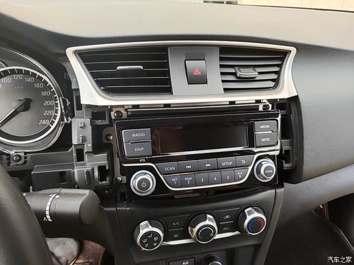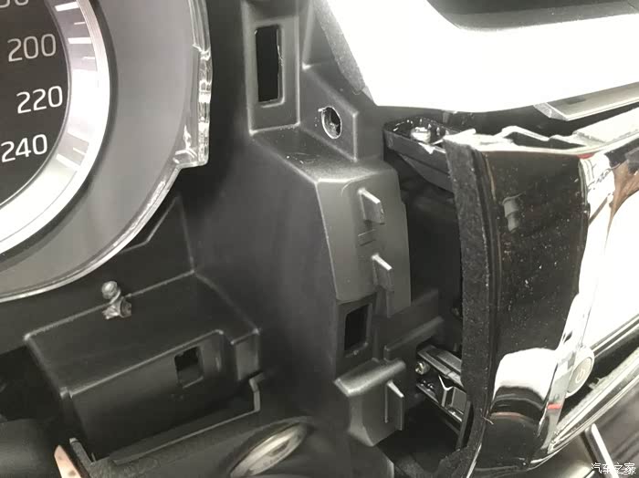 先拆开仪表框,方便撬。现在可以看到原来收音机的面板的左侧了,有空的位置都可以撬,尽情的撬,反正收音机和旧面板都不要了