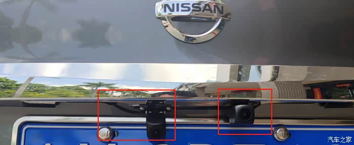 车牌顶部安装的2个摄像头,左边的是倒车影像的,向下。右边的是行车记录仪的,向后面,