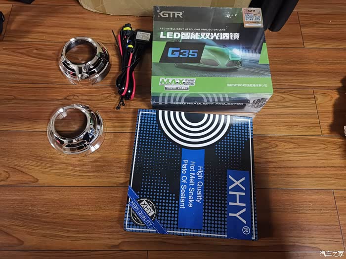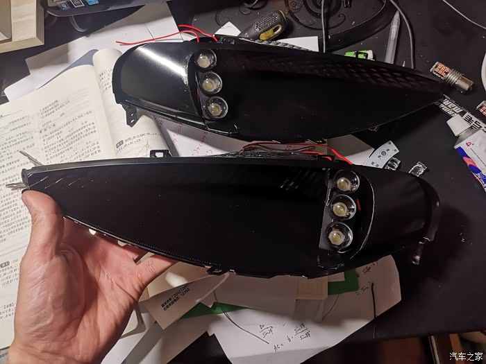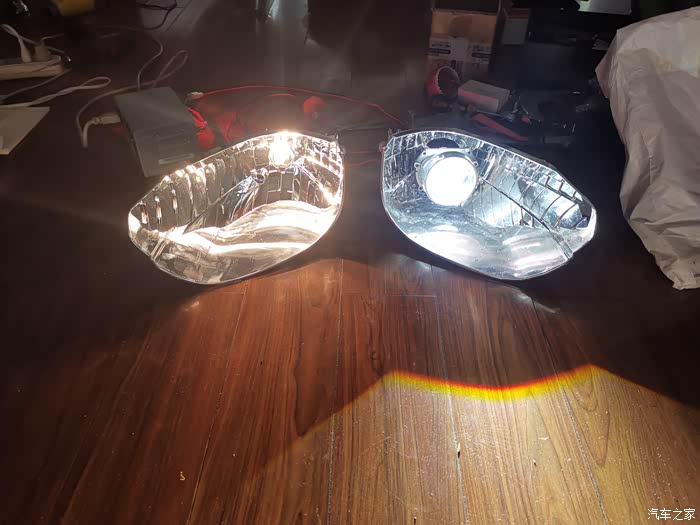 组装完毕一个,内部熏黑采用原厂工艺,透镜自带反光碗,所以不存在影响亮度问题,灯罩还是透明的