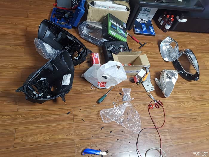 拆大灯,很简单,8颗螺丝,4个卡扣就下来了,注意保护灯角