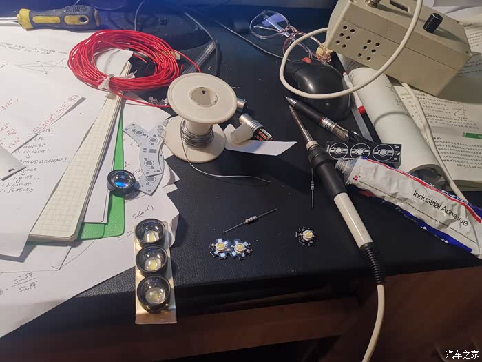 最后的方案是装在转向灯一起,自制大功率带透镜LED灯板