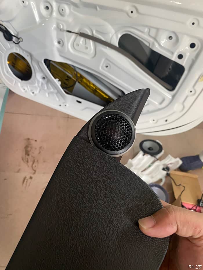 这个高音会超出你们的想象 等后天包好皮在上图 绝对意外 哈哈 这样的小车改音响只能清晰不那么难听就算了 因为车子空间小 高音距离不够 门板材质太差 经不起低频引起的共振 主机的功率太小 所以我的选择是 好看