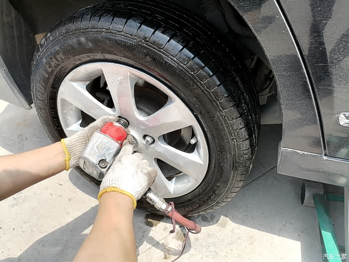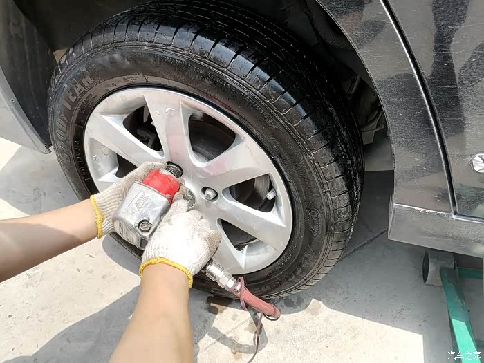 把侧面有损伤的轮胎更换到备胎上了。一位我的备胎也有十几年没用了,橡胶已经严重风化了
