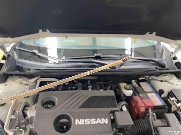 最后检查发动机油量,轩逸车发动机小,也就加3升左右的机油。