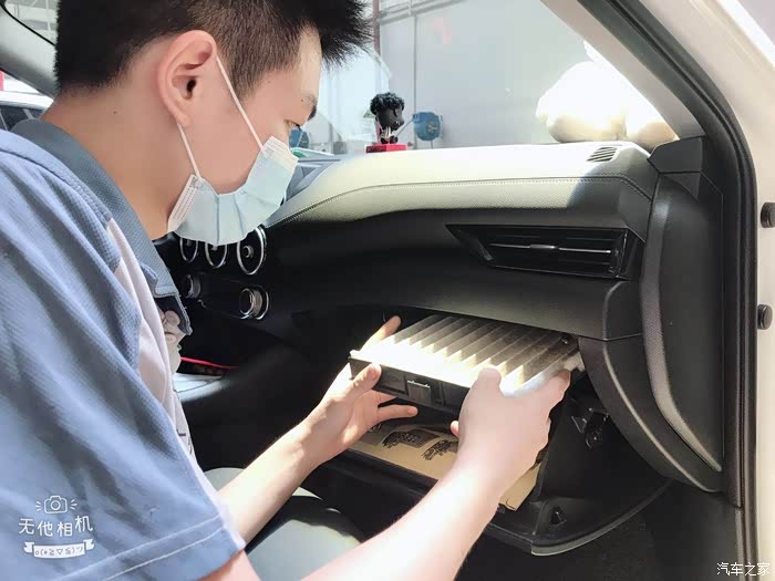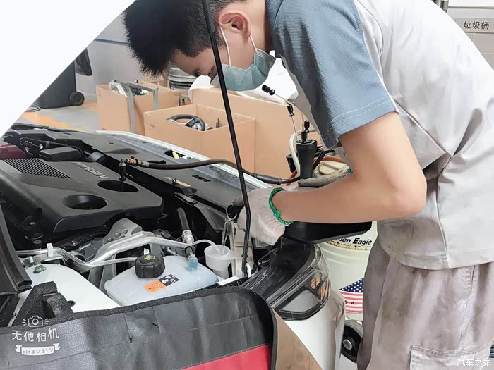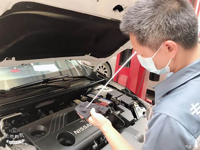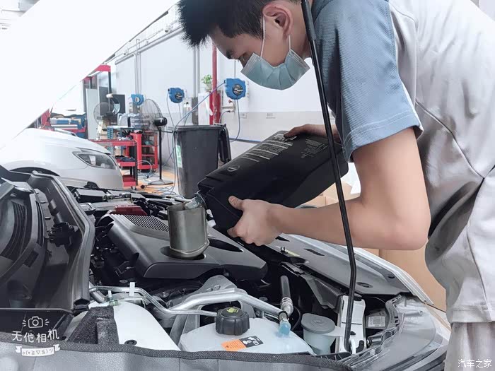 更换发动机机油时,老师傅还会很认真仔细地对发动机舱部位件进行全面的检查,确认发动机各部位是否有漏油或抖动异响等,还查看了制动液,冷却液,雨刮液,机油液位是否满足要求,检查蓄电池,检查发动机驱动皮带是否磨损,同时对进气滤芯、空调滤芯进行拆卸清洗等。