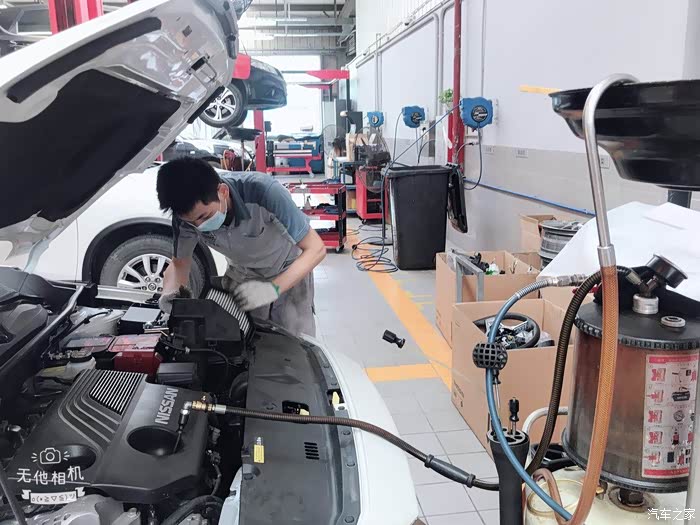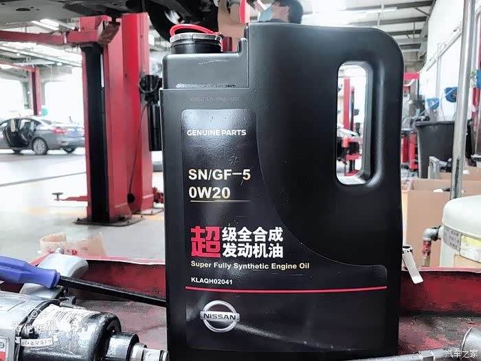 作为二保,这次的主要项目为更换机油和机油滤清器,对于发动机机油,个人觉得首先肯定是全合成机油咯。因为合成油使用的温度更广,使用期限更长。同样的油膜要求,合成油可用较低的黏度就可达成,而矿物油就需用相对于合成油较浓的黏度才可达到如此要求。这次给小轩换上了为东风日产专用的超级全合成0W-20机油,单瓶身的包装看着就比较高大上的了,更何况老师傅对整个更换机油流程做到十分地谨慎和务实,且态度诚恳热情。整个小保下来一路跟踪,有什么不懂的地方老师傅都友好地专业为你解答疑惑,可谓技术工匠,必须点赞。