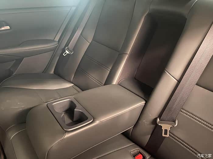 后排还带有杯架,放个水杯非常方便。中间的地台也不高,坐上去人不会感到拥挤。