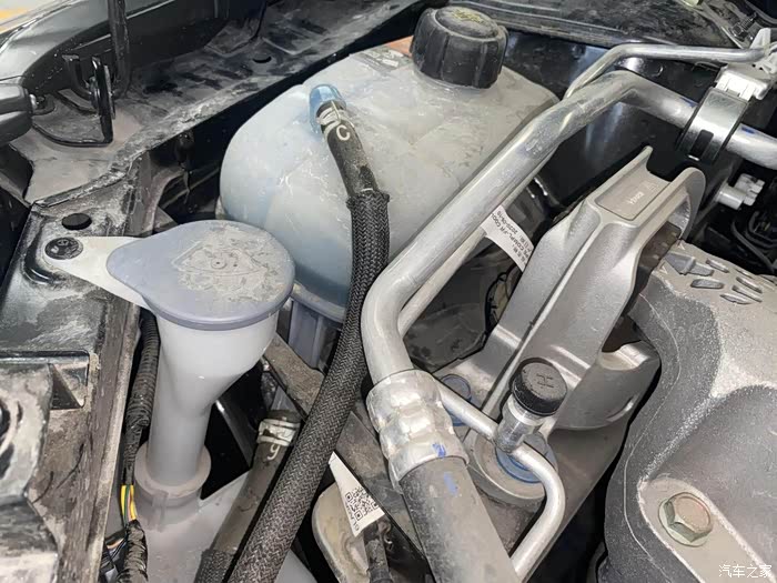 加完玻璃水,顺便看了一下防冻液,透明的颜色非常好观察。