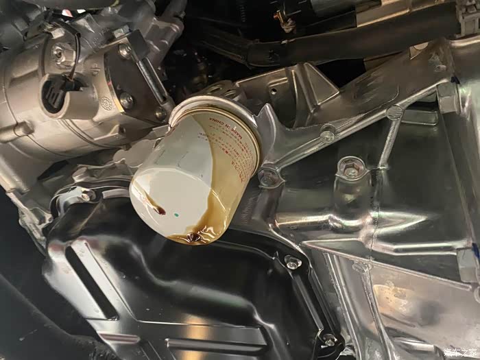 机油滤芯,更换的时候不是很方便,跟师傅说了换完后要帮我擦一擦。